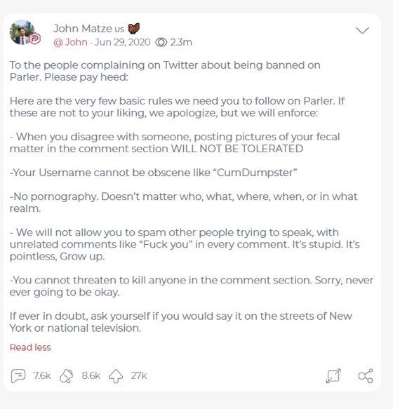 Parler has fewer rules than twitter and facebook over what it allows on its network. Start date jun 8, 2011. Parler has a significant user base of donald trump supporters, conservatives, conspiracy theorists. Parler is an unbiased social media focused on real user experiences and engagement. However, in certain rhetorical contexts and for specific purposes, these rules may be broken.